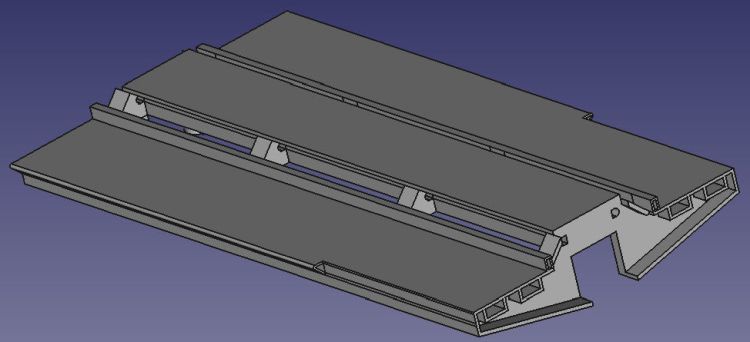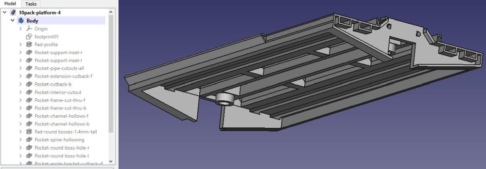 Below: Screen grabs of the 3D designs in FreeCAD. Each part has a mounting peg to glue into holes drilled into the Athearn centersills.