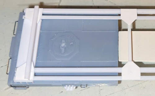 ACC-glued 0.005" styrene panels where the rack's cross-members will attach to the centersill. These allow for styrene-to-styrene