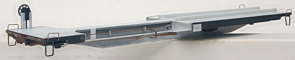 Below: These bottom views of the finished build show the modified underframe and deck underside. I used 0.030" styrene to make new