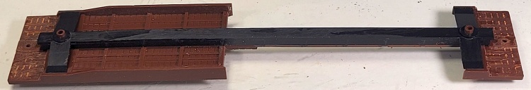 The brake rod supports are flat brass strips bent into loops and inserted into holes drilled into the centersill for strength.