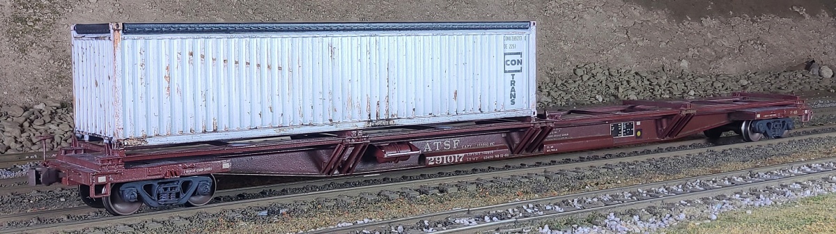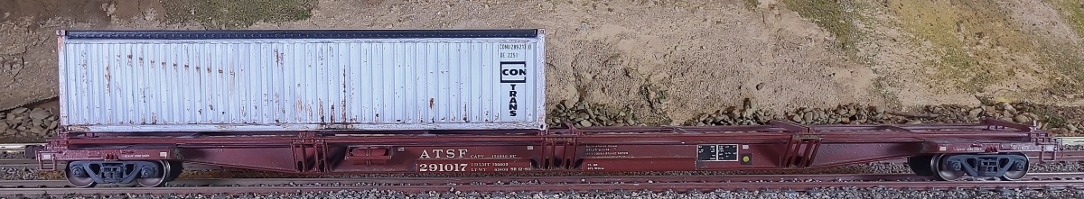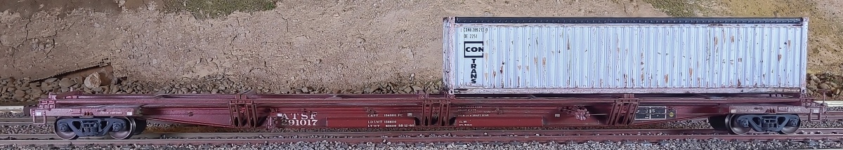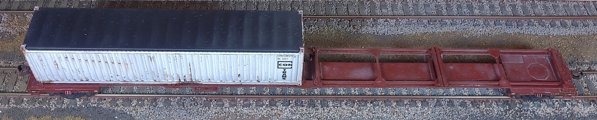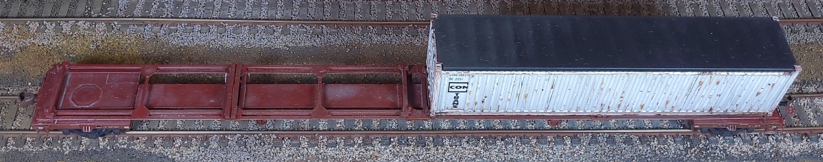 I have no idea what car number it is - only the "Ft-65" marking is legible. I also replicated the ConTrans open-top 40' container.