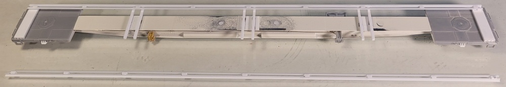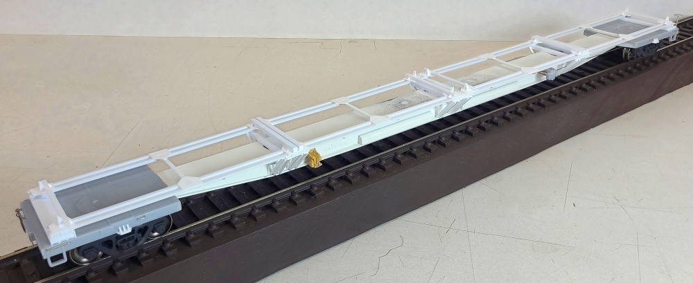 I stripped the white paint from the plastic end platforms, and the lettering from the centersill.