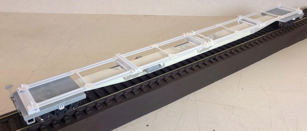 ACC-glued 0.005" styrene panels where the rack's cross-members will attach to the centersill. These allow for styrene-to-styrene