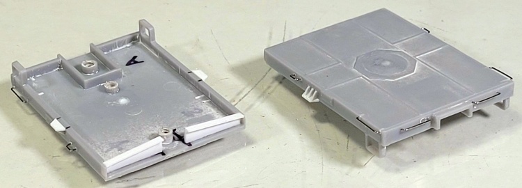 Below: The cross-members are 0.060" thick styrene, cut to a width matching a container body width. The two end members