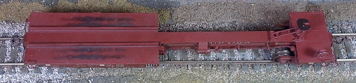 To finish the car, I painted it ATSF Mineral Brown, including the trucks and trailer hitch per