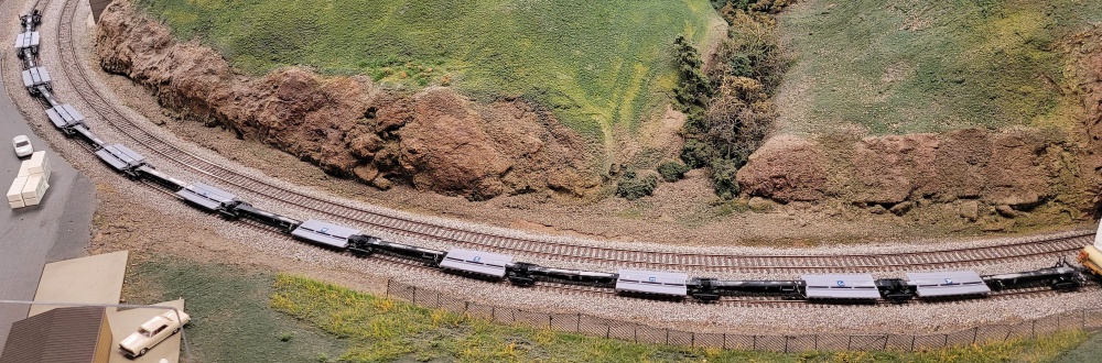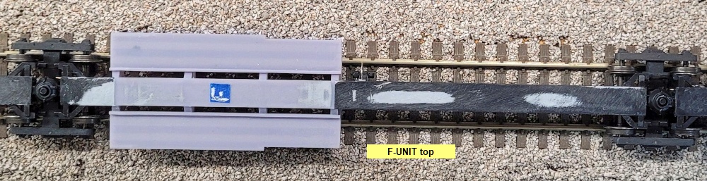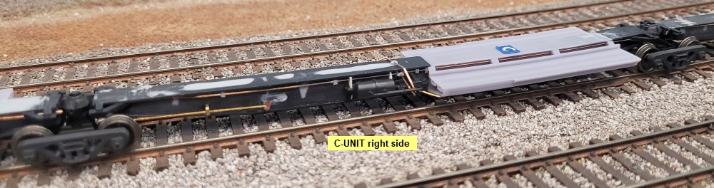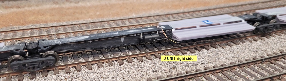 Kadee 0.010" ring spacers between the bolsters and trucks at the nine mid-unit joints.