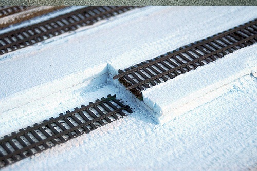 Below: The derail with the dirt/ballast scenic layer