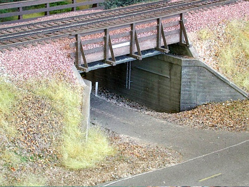 Below: The bridge on the East Switch section is supported by wood blocks attached